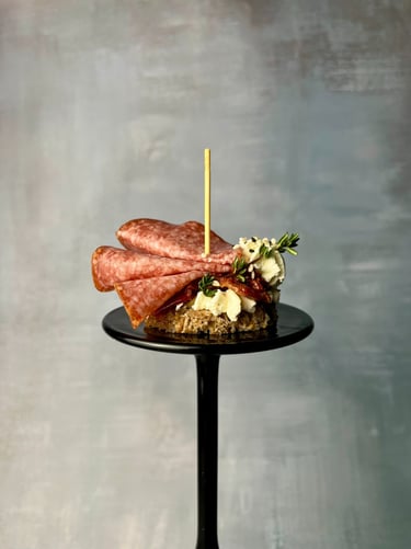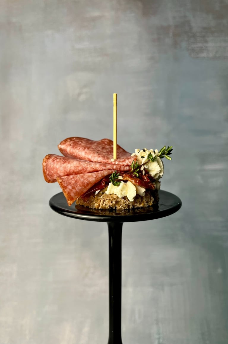 Sumuštinukas su varškės kremu, saliamiu ir saulėje džiovintais pomidorais