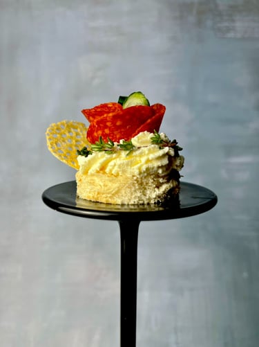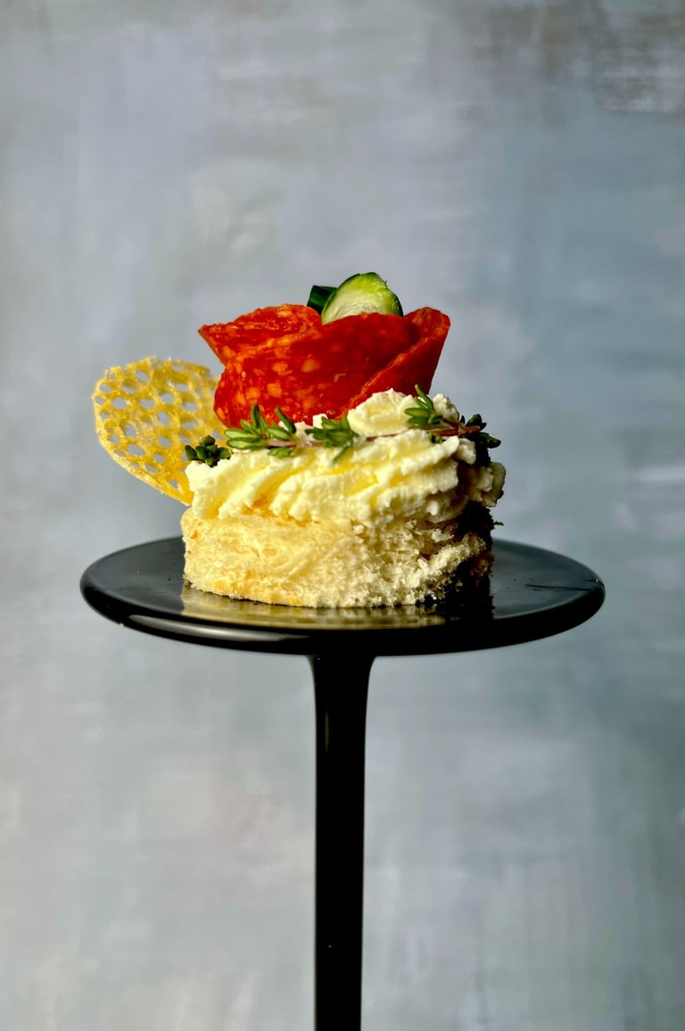 Sumuštinukas su varškės kremu, saliamiu ir agurkais