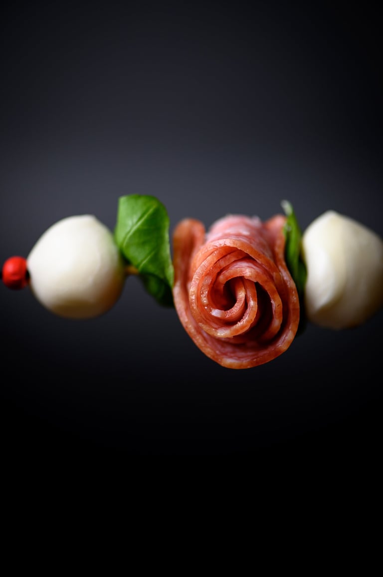 Mocarelos rutuliukų ir saliamio vėrinukas