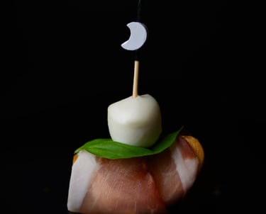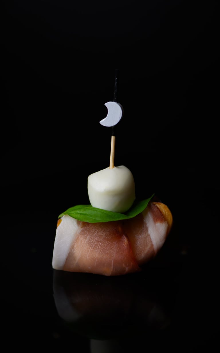 Persiko suktinukas su kumpiu ir mocarelos rutuliuku