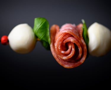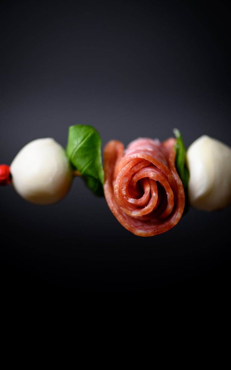 Mocarelos rutuliukų ir saliamio vėrinukas
