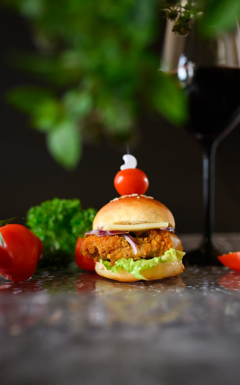 Mini mėsainis su traškia vištiena ir sūriu