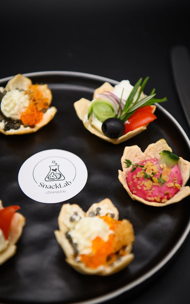 Krepšelis su dirbtiniais ikrais ir sūrio kremu